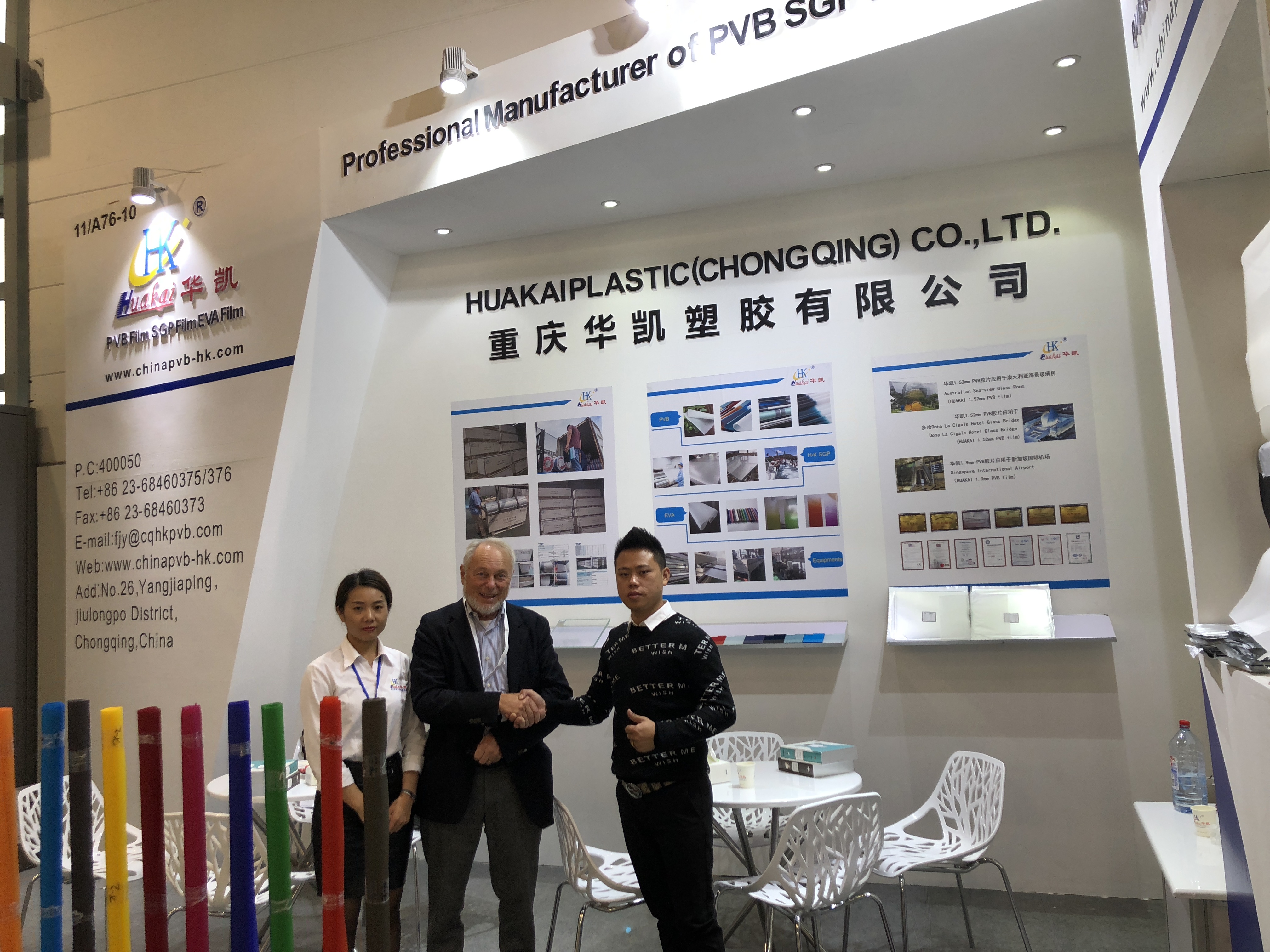 我司參加了本次盛會(huì)。此次展會(huì)主要集中展示了PVB膠片,SGP膠片,EVA膠片及2大新產(chǎn)品:自動(dòng)漸變PVB膠片,SGP膠片。在這幾天的展會(huì)中,華凱企業(yè)展臺(tái)吸引了海內(nèi)外客商的極大關(guān)注,其中SGP膠片,PVB膠片,EVA膠片等新產(chǎn)品成為本次展會(huì)的一大亮點(diǎn)。