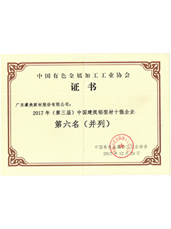 2017中國建筑鋁型材十強企業(yè)